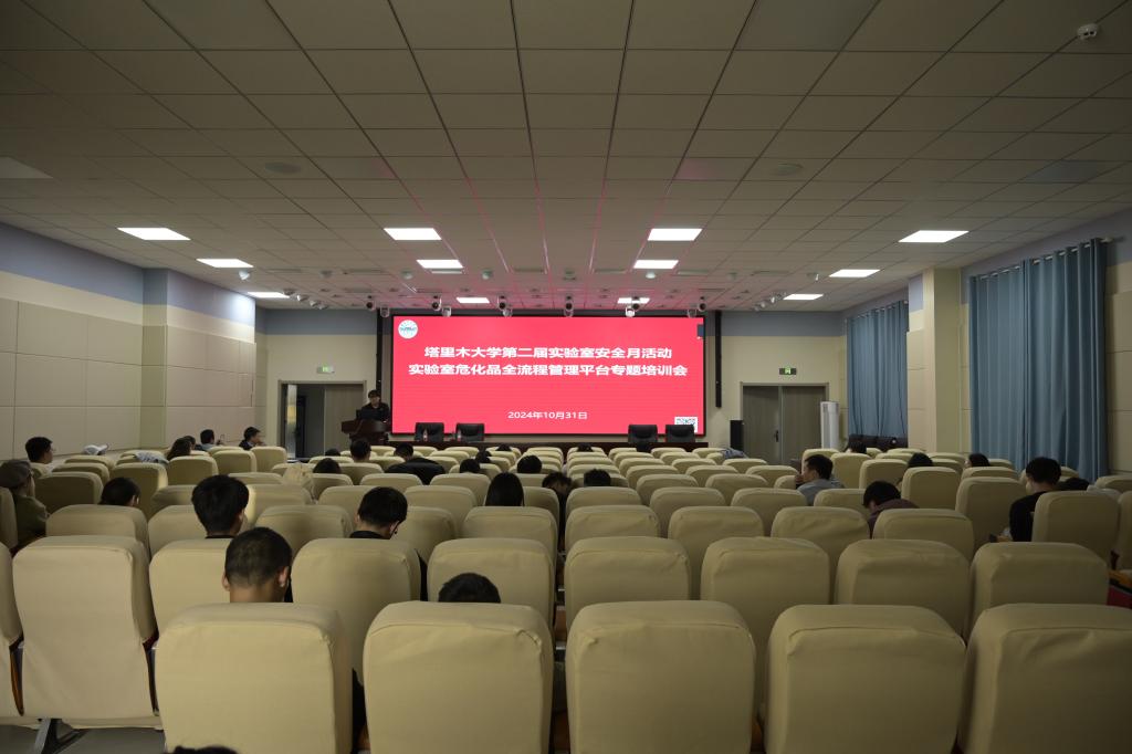 10月31日下午,实验室与设备管理处在南疆现代农业先进技术研究院B301室组织开展塔里木大学第二届实验室安全月活动--实验室危化品全流程管理平台专题培训及交流会,全校涉及化学品使用的单位的实验员、科研平台联络员、实验室主任、化学品库房管理员和相关师生参会。