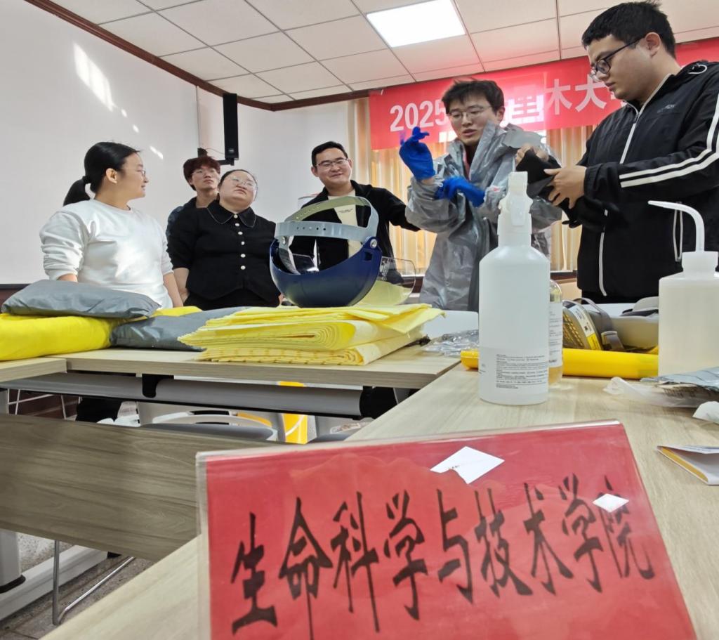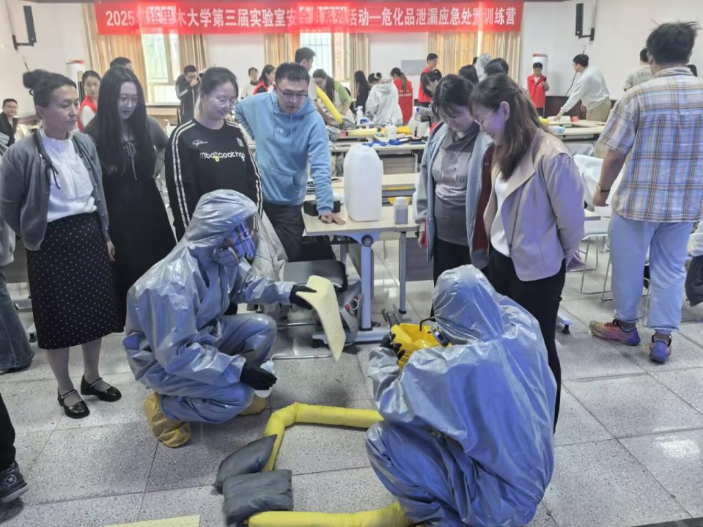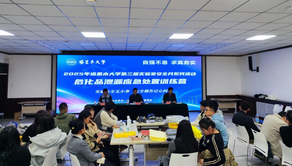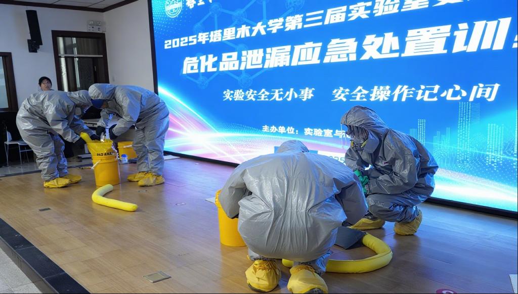 为进一步增强学校师生实验室安全责任意识,提升师生实验室突发安全事故个人防护及应急处置技能,10月13日,学校开展了2025年塔里木大学第三届实验室安全月系列活动—危化品泄漏应急处置训练营,党委常委、副校长万传星出席并讲话,涉化学院师生代表90余人参加。