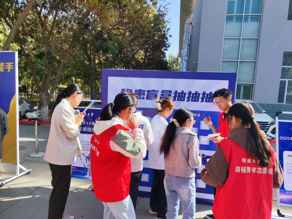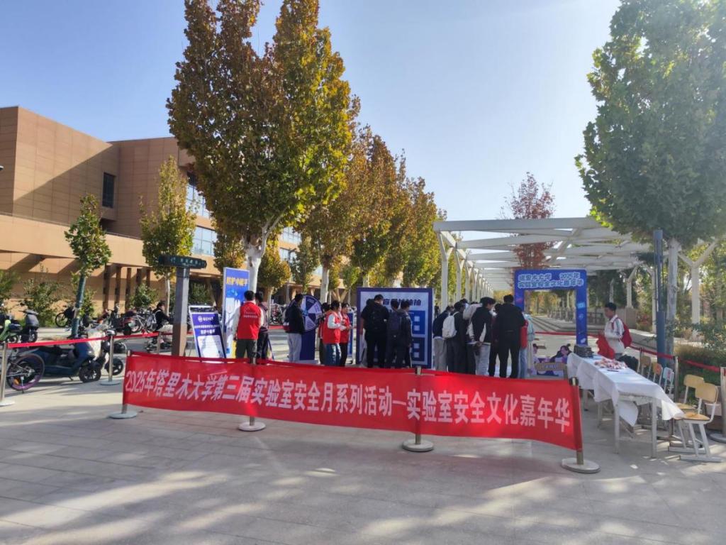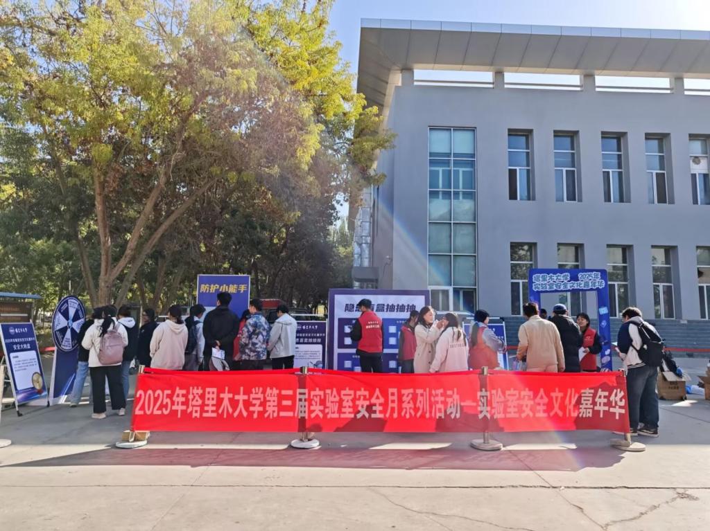 为进一步提升实验室安全防范意识和能力,筑牢安全防线,加强实验室安全教育,10月14日至15日,由实验室与设备管理处主办的2025年塔里木大学第三届实验室安全月系列活动—实验室安全文化嘉年华在校本部第三食堂门口和新校区枣苑食堂门口顺利举行。