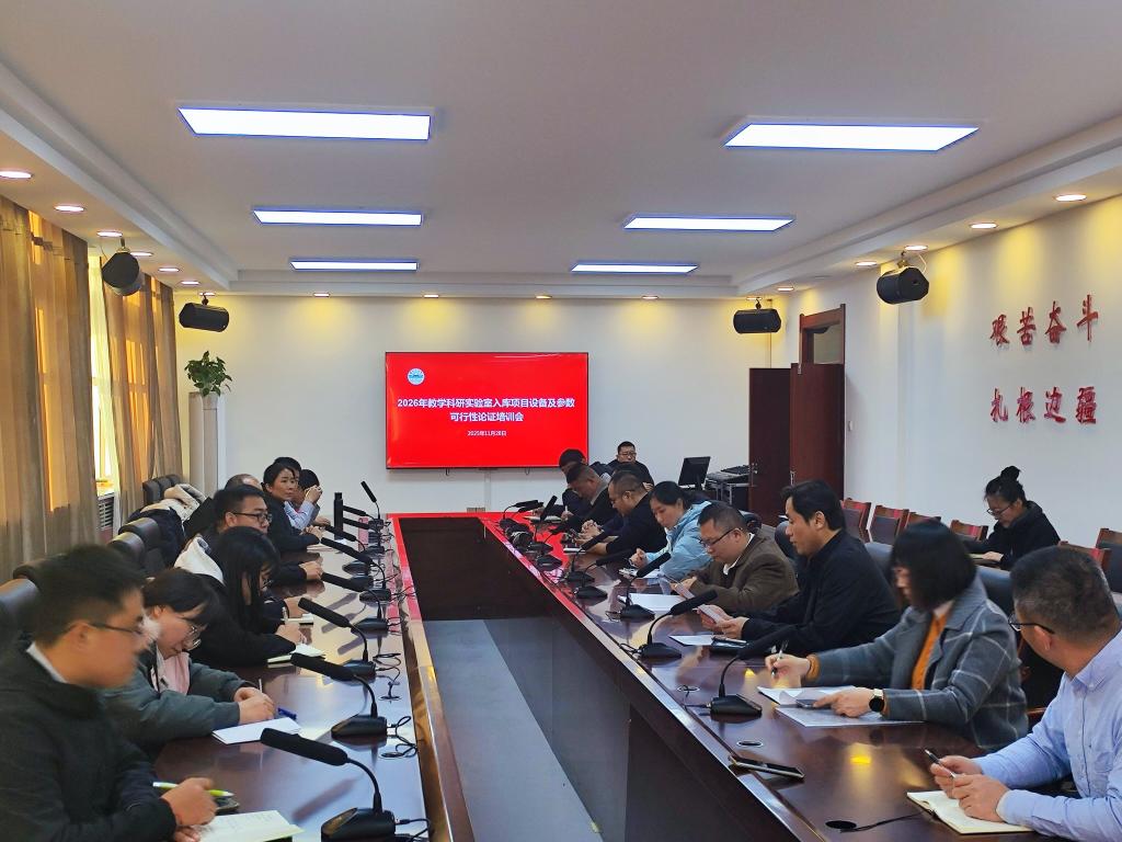 11月28日下午,我校在行政楼509会议室举办2026年教学科研实验室入库项目设备及参数可行性论证培训会。实验室与设备管理处处长刘兵主持会议,各部门项目联系人参加会议。